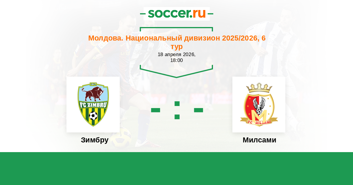 Молдова. Национальный дивизион 01.04.2018 Милсами Логотип футбольный клуб Милсами (Оргеев) 1:0 Логотип футбольный клуб Зимбру (Кишинев) Зимбру