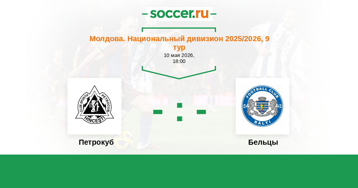 Молдова. Национальный дивизион 04.10.2025 Петрокуб Логотип футбольный клуб Петрокуб (Хынчешты) 0:0 Логотип футбольный клуб Бельцы Бельцы