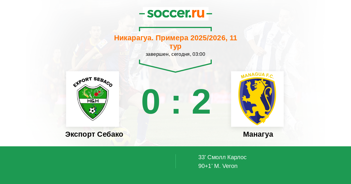 История матча Экспорт Себако против Манагуа
