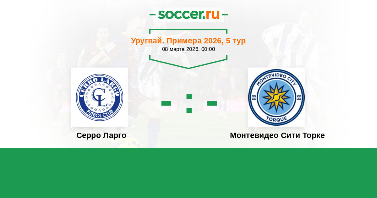 Уругвай. Примера A 01.03.2021 Монтевидео Сити Торке Логотип футбольный клуб Монтевидео Сити Торке 0:0 Логотип футбольный клуб Серро Ларго (Мело) Серро Ларго
