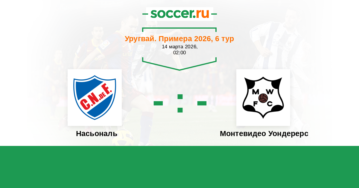 Уругвай. Примера A 09.03.2020 Монтевидео Уондерерс Логотип футбольный клуб Монтевидео Уондерерс 2:2 Логотип футбольный клуб Насьональ (Монтевидео) Насьональ