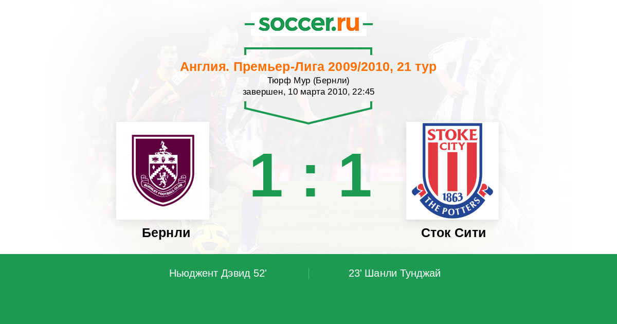 Протокол матча Бернли против Сток Сити