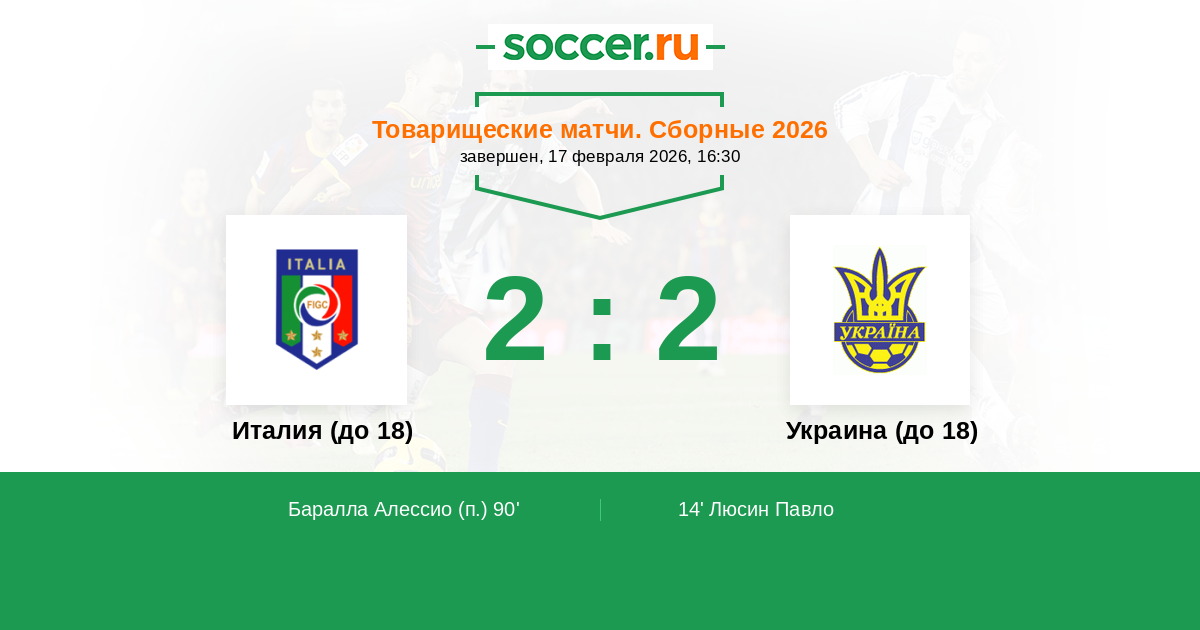 Протокол матча Италия (до 18) против Украина (до 18)