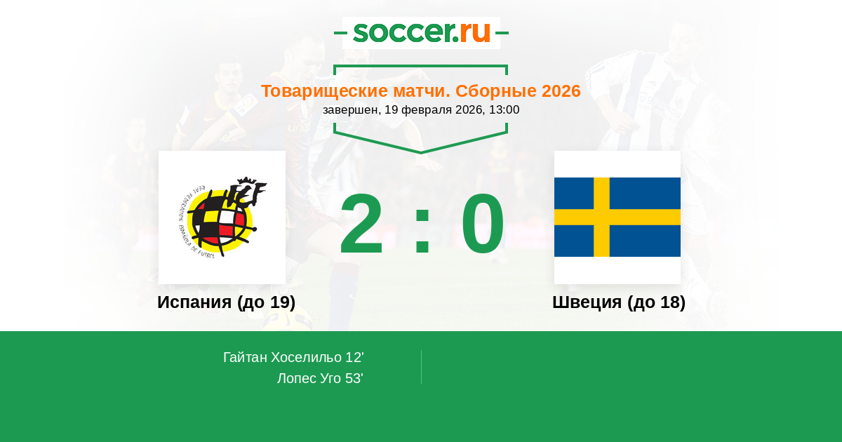 Протокол матча Испания (до 19) против Швеция (до 18)