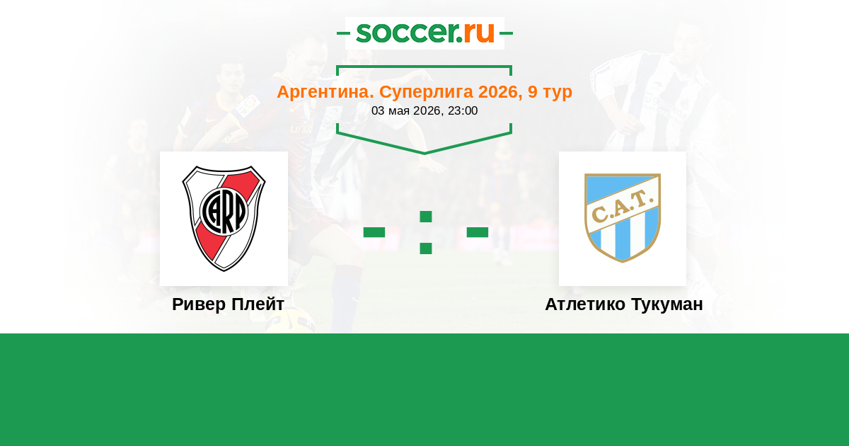 Аргентина. Суперлига 15.02.2024 Атлетико Тукуман Логотип футбольный клуб Атлетико Тукуман (Сан-Мигель-де-Тукуман) 0:0 Логотип футбольный клуб Ривер Плейт (Буэнос-Айрес) Ривер Плейт