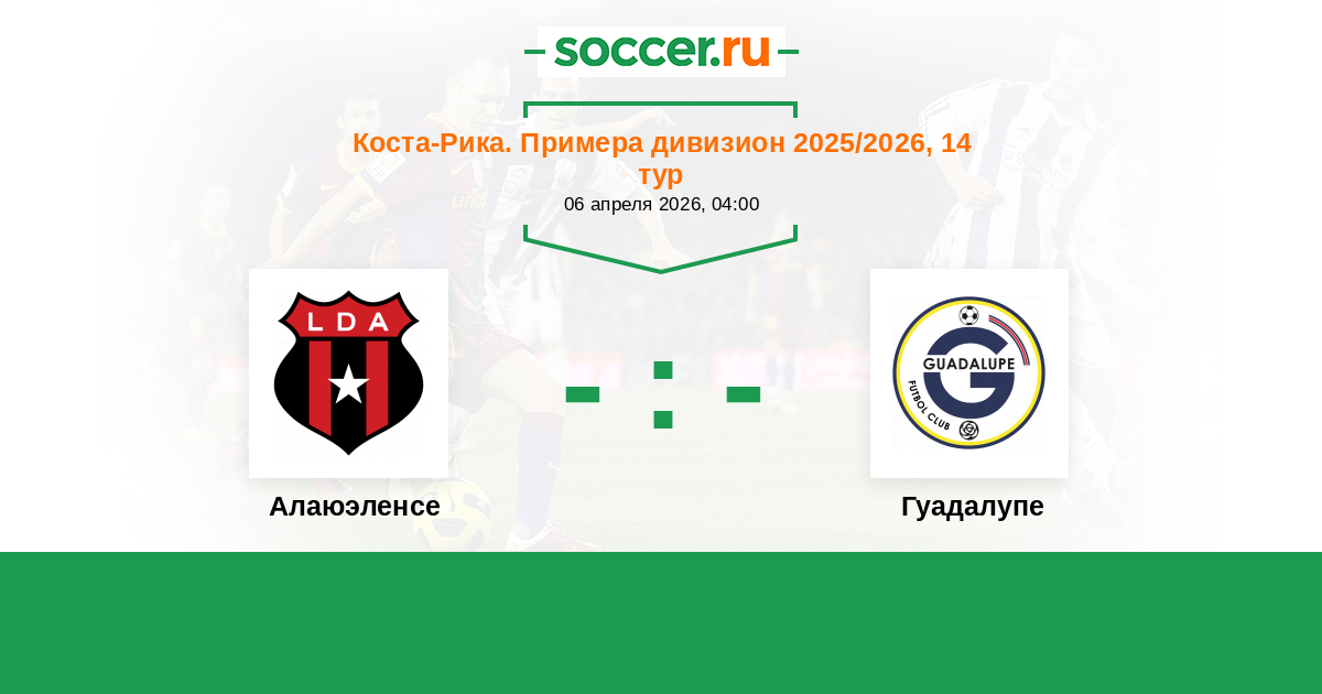 Коста-Рика. Примера дивизион 11.04.2022 Гуадалупе Логотип футбольный клуб Гуадалупе 0:2 Логотип футбольный клуб Алаюэленсе (Алаюэла) Алаюэленсе