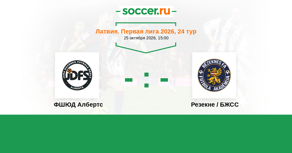 Латвия. Первая лига 09.10.2021 Резекне / БЖСС Логотип футбольный клуб Резекне / БЖСС 2:0 Логотип футбольный клуб ФШЮД Албертс (Рига) ФШЮД Албертс