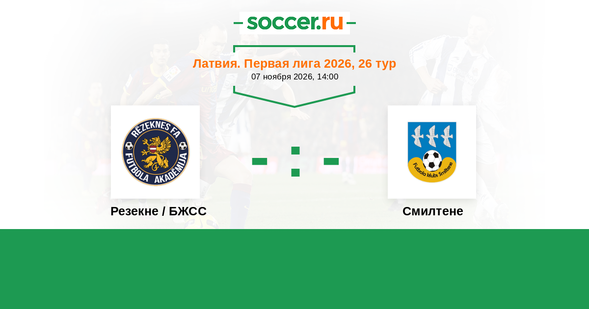 Латвия. Первая лига 01.11.2025 Смилтене Логотип футбольный клуб Смилтене 2:2 Логотип футбольный клуб Резекне / БЖСС Резекне / БЖСС