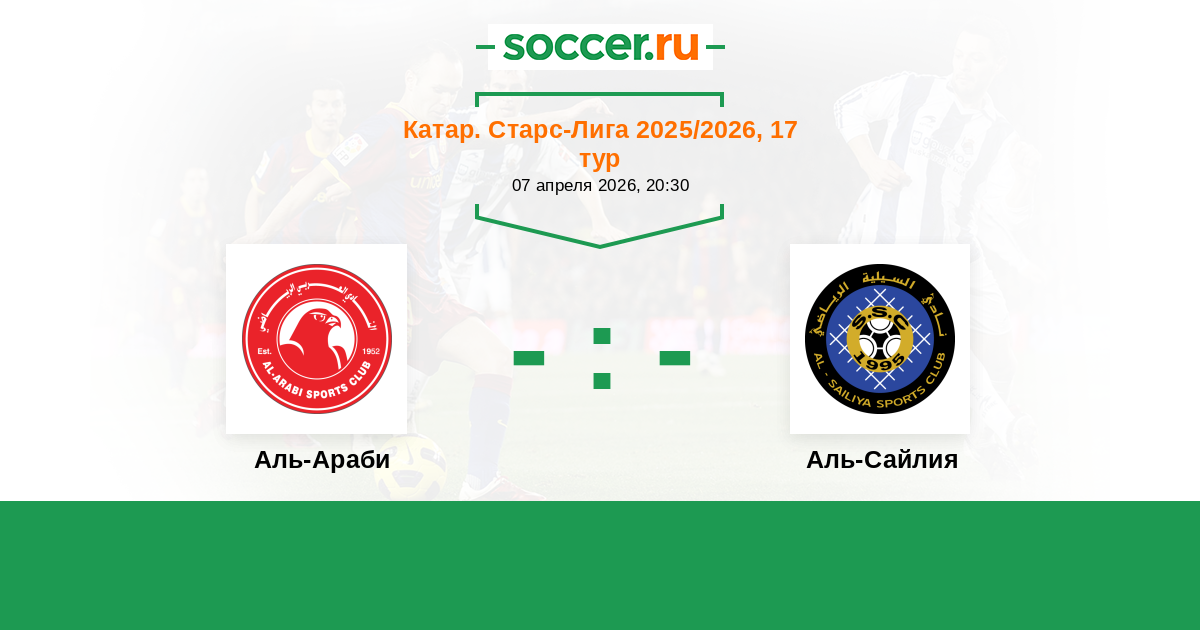 Катар. Старс Лига 16.09.2017 Аль-Араби Логотип футбольный клуб Аль-Араби (Доха) 1:3 Логотип футбольный клуб Аль-Сайлия (Доха) Аль-Сайлия