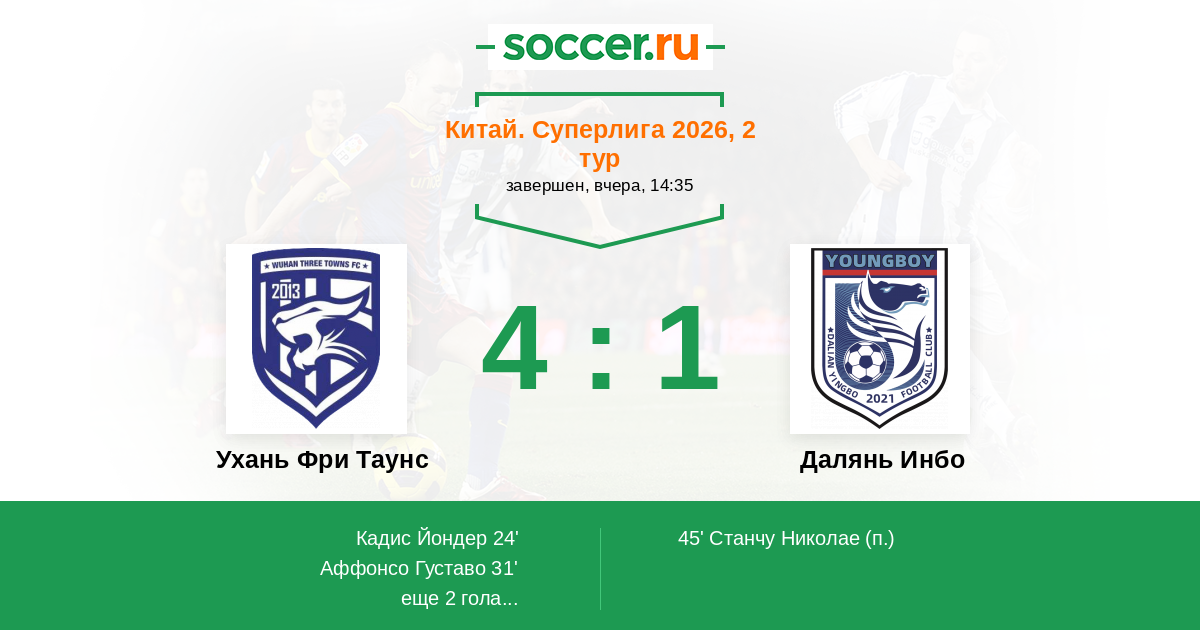Протокол матча Ухань Фри Таунс против Далянь Инбо