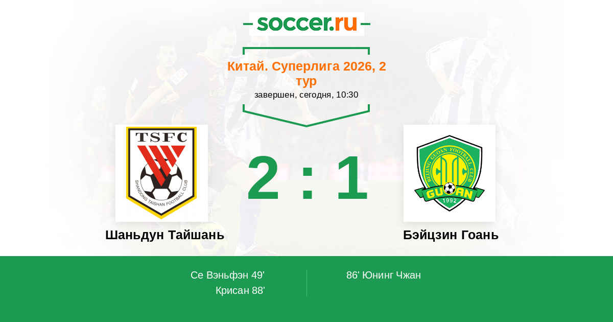 Протокол матча Шаньдун Тайшань против Бэйцзин Гоань