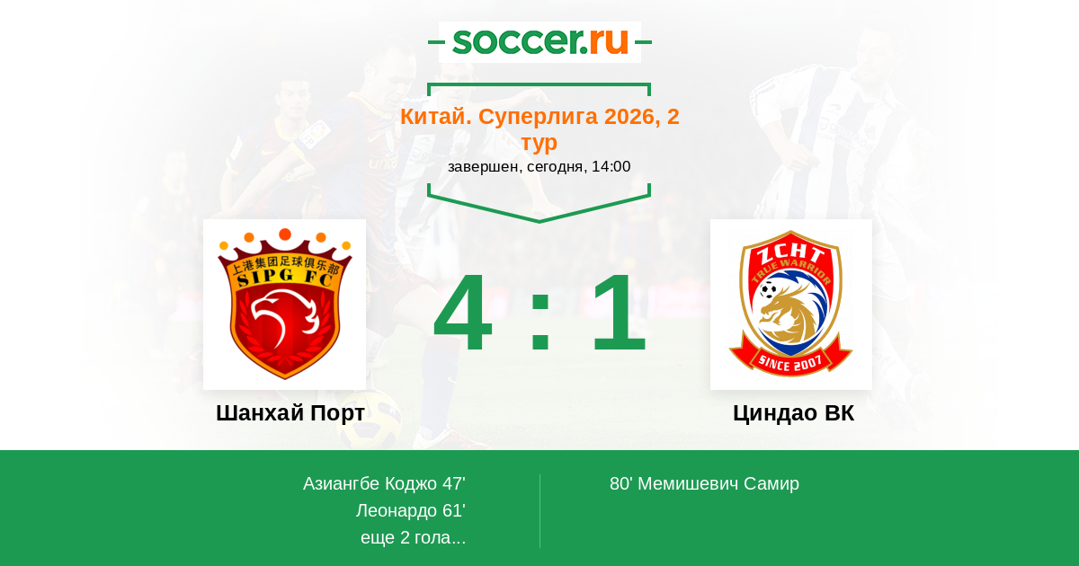 47' (1:0) Азиангбе Коджо (8) (Ли Шуай (32))