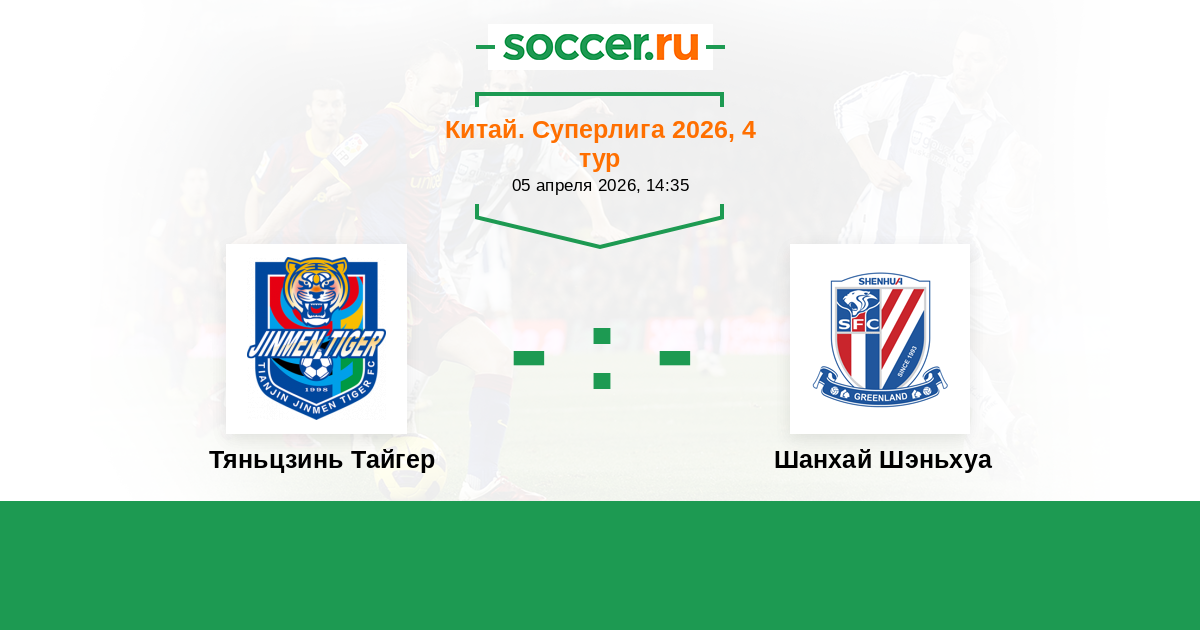 Китай. Суперлига 10.05.2019 Тяньцзинь Тайгер Логотип футбольный клуб Тяньцзинь Тайгер 1:1 Логотип футбольный клуб Шанхай Шэньхуа Шанхай Шэньхуа