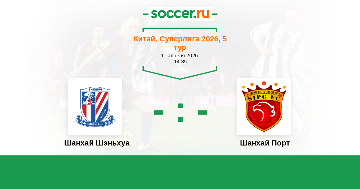 Китай. Суперлига 29.07.2023 Шанхай Шэньхуа Логотип футбольный клуб Шанхай Шэньхуа 0:5 Логотип футбольный клуб Шанхай Порт Шанхай Порт