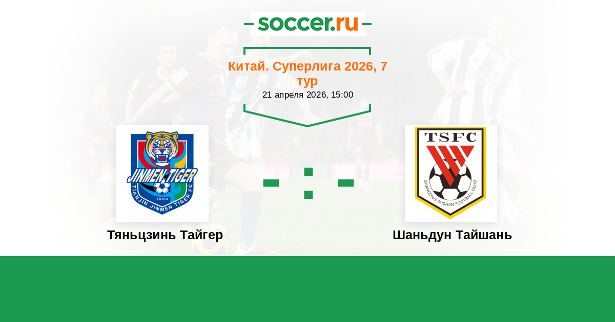 Китай. Суперлига 17.04.2015 Шаньдун Тайшань Логотип футбольный клуб Шаньдун Тайшань (Цзинань) 2:3 Логотип футбольный клуб Тяньцзинь Тайгер Тяньцзинь Тайгер