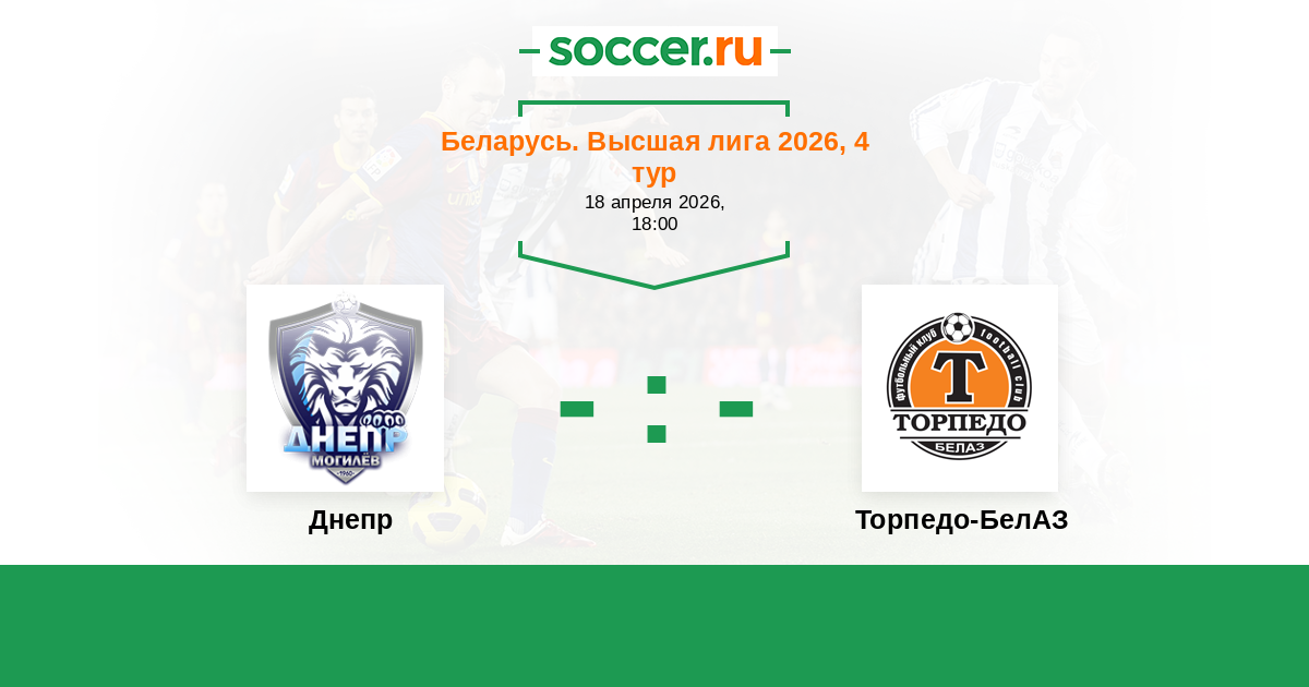 Беларусь. Высшая лига 11.04.2014 Днепр Логотип футбольный клуб Днепр (Могилев) 2:2 Логотип футбольный клуб Торпедо-БелАЗ (Жодино) Торпедо-БелАЗ