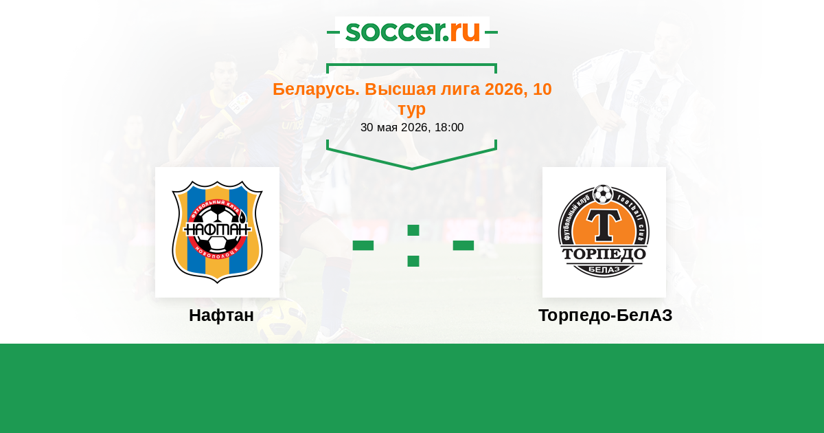 Беларусь. Высшая лига 02.05.2010 Нафтан Логотип футбольный клуб Нафтан (Новополоцк) 1:1 Логотип футбольный клуб Торпедо-БелАЗ (Жодино) Торпедо-БелАЗ