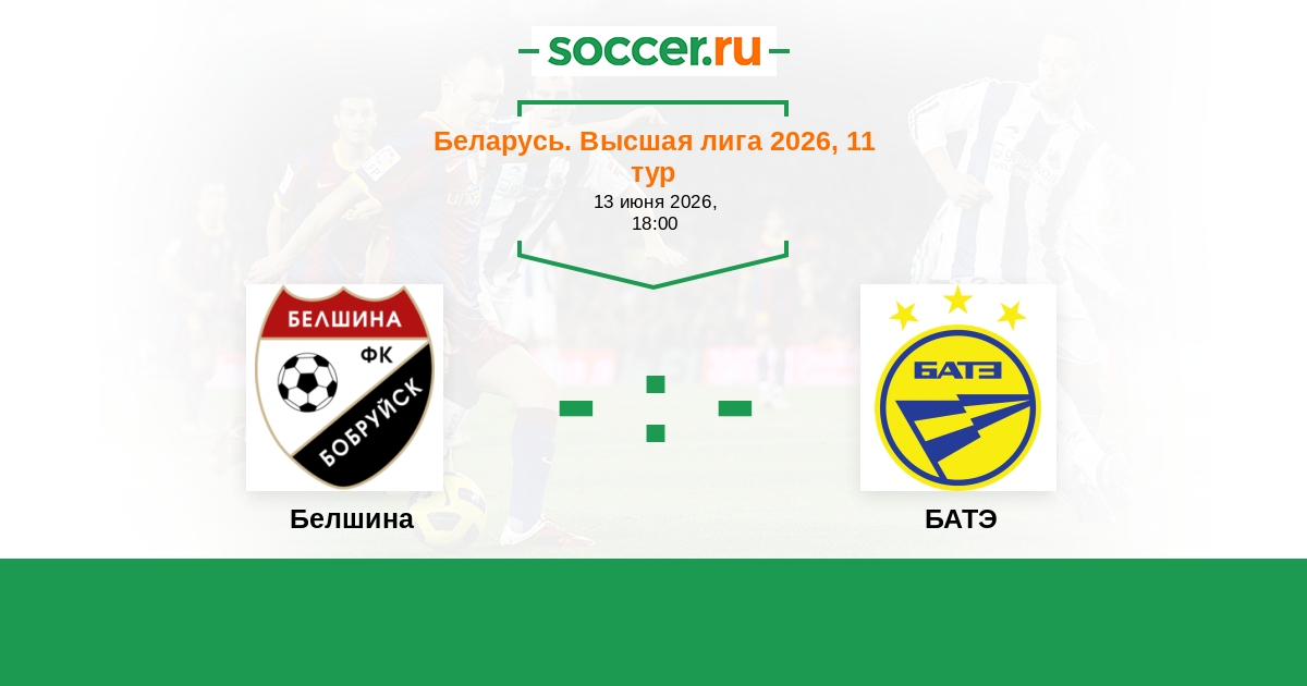 Беларусь. Высшая лига 21.06.2020 Белшина Логотип футбольный клуб Белшина (Бобруйск) 0:2 Логотип футбольный клуб БАТЭ (Борисов) БАТЭ
