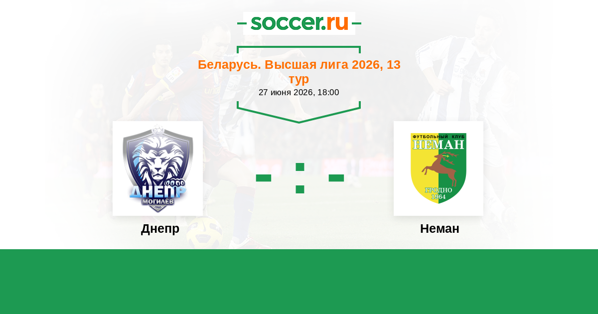 Беларусь. Высшая лига 28.06.2014 Неман Логотип футбольный клуб Неман (Гродно) 4:1 Логотип футбольный клуб Днепр (Могилев) Днепр