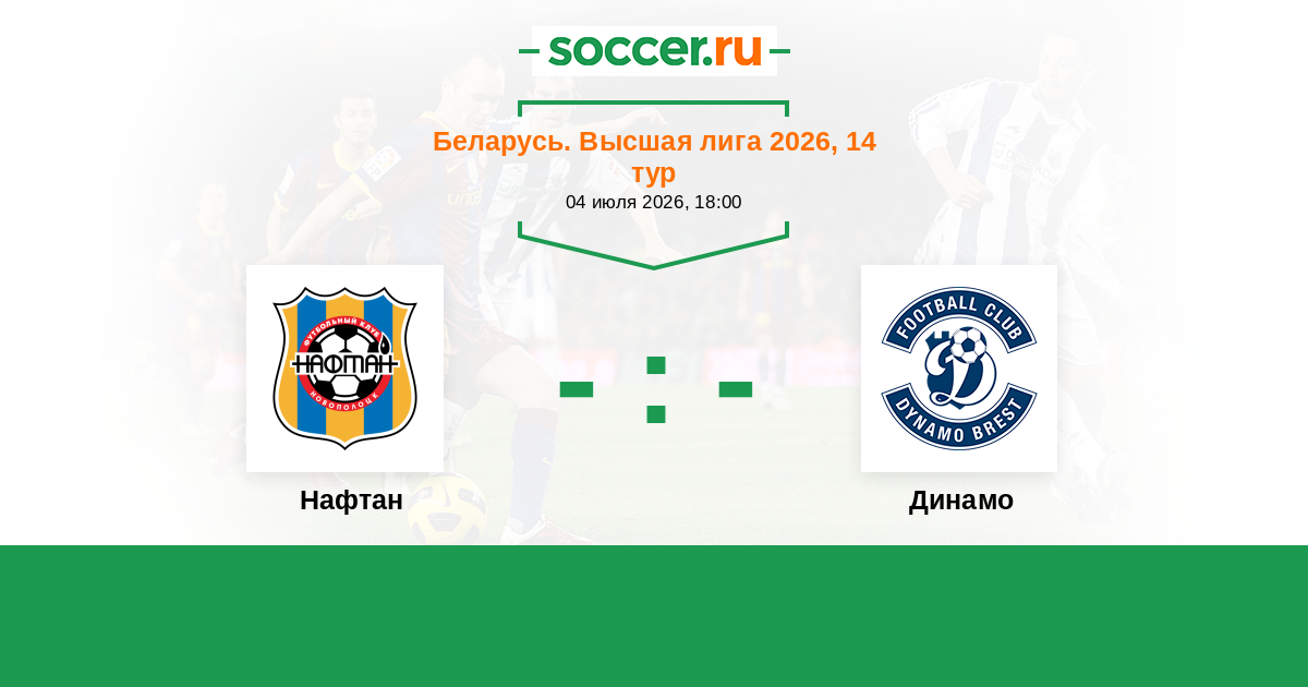 Беларусь. Высшая лига 04.06.2017 Динамо Логотип футбольный клуб Динамо (Брест) 2:0 Логотип футбольный клуб Нафтан (Новополоцк) Нафтан