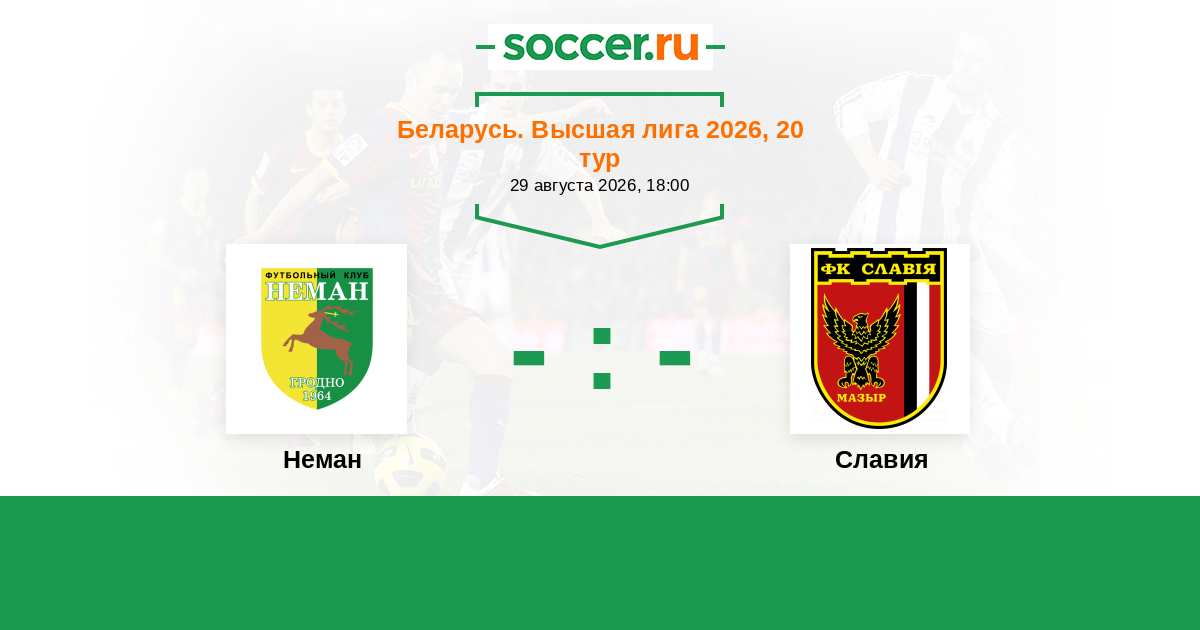 Беларусь. Высшая лига 06.06.2020 Славия Логотип футбольный клуб Славия (Мозырь) 1:3 Логотип футбольный клуб Неман (Гродно) Неман