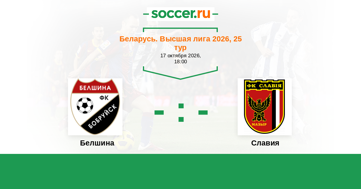 Беларусь. Первая лига 20.10.2018 Белшина Логотип футбольный клуб Белшина (Бобруйск) 0:2 Логотип футбольный клуб Славия (Мозырь) Славия