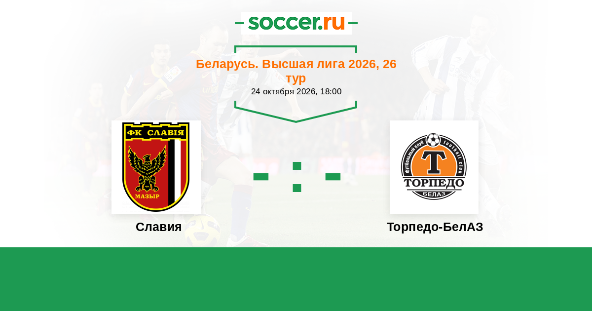 Беларусь. Высшая лига 09.08.2019 Торпедо-БелАЗ Логотип футбольный клуб Торпедо-БелАЗ (Жодино) 1:1 Логотип футбольный клуб Славия (Мозырь) Славия