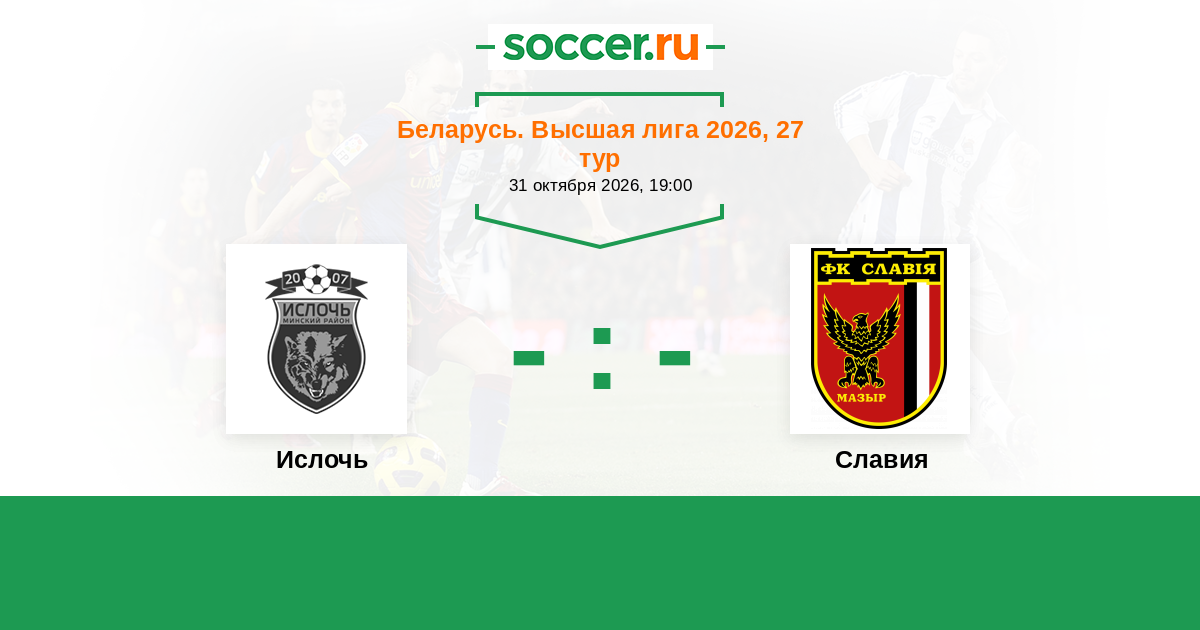 Беларусь. Высшая лига 01.08.2020 Славия Логотип футбольный клуб Славия (Мозырь) 2:4 Логотип футбольный клуб Ислочь (Минск) Ислочь