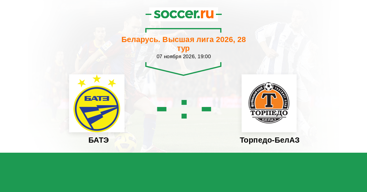 Беларусь. Высшая лига 20.06.2017 БАТЭ Логотип футбольный клуб БАТЭ (Борисов) 0:0 Логотип футбольный клуб Торпедо-БелАЗ (Жодино) Торпедо-БелАЗ