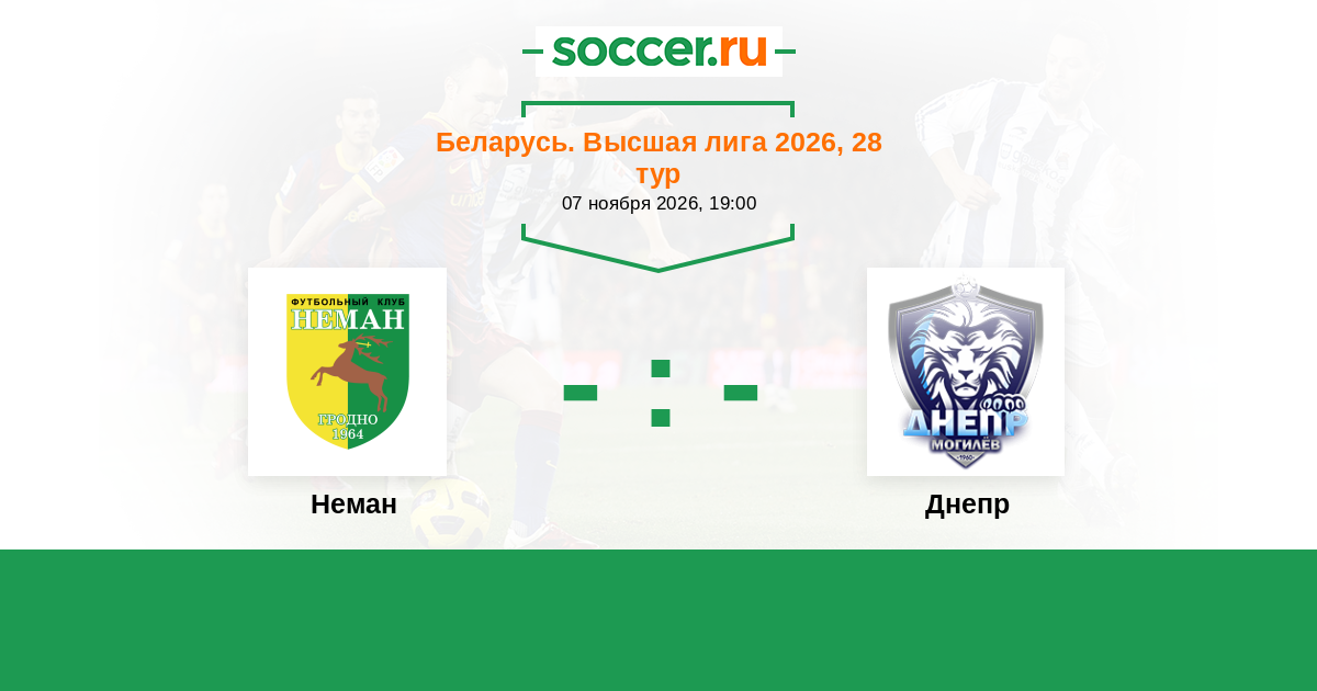 Беларусь. Высшая лига 21.09.2019 Неман Логотип футбольный клуб Неман (Гродно) 1:0 Логотип футбольный клуб Днепр (Могилев) Днепр