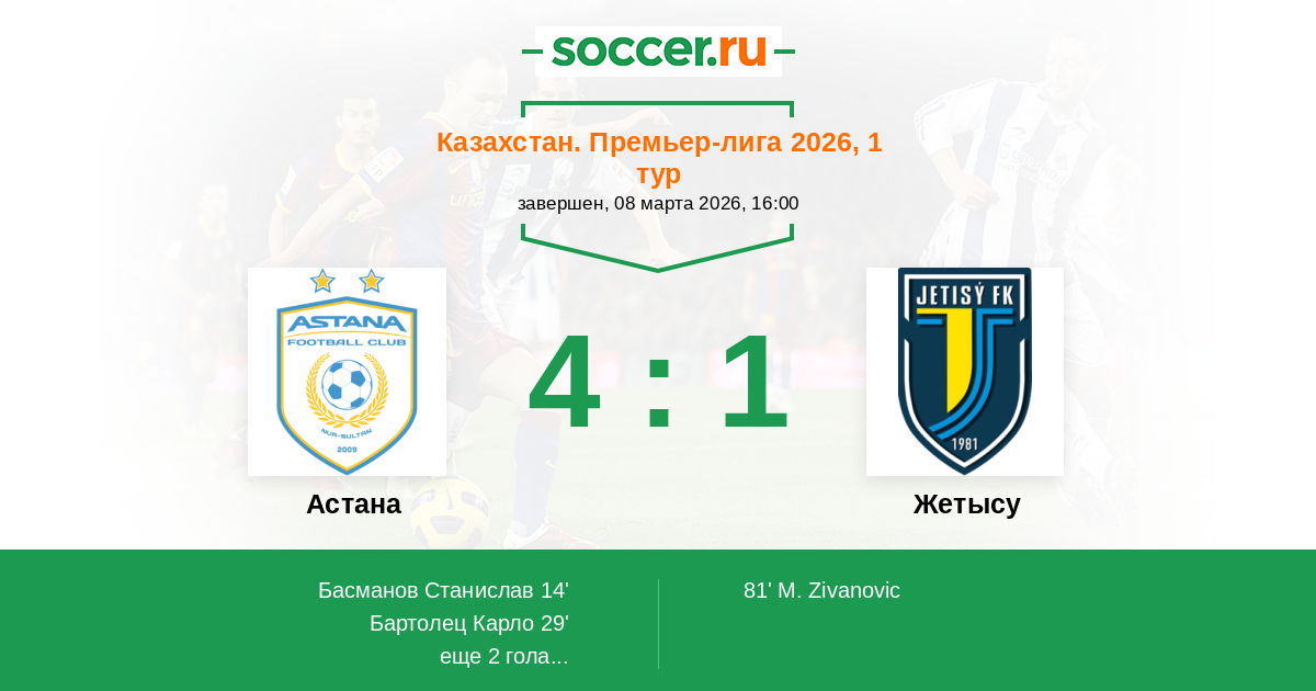 Протокол матча Астана против Жетысу