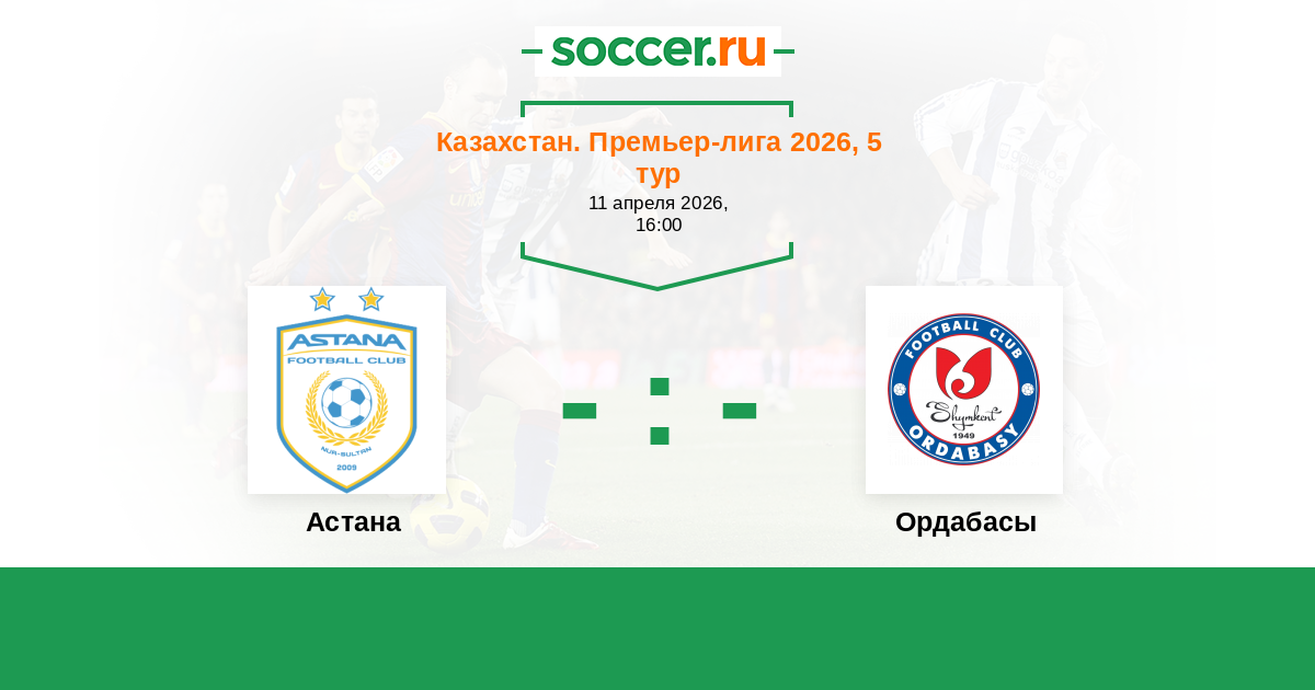 Казахстан. Премьер-лига 12.05.2010 Ордабасы Логотип футбольный клуб Ордабасы (Шымкент) 3:1 Логотип футбольный клуб Астана Астана