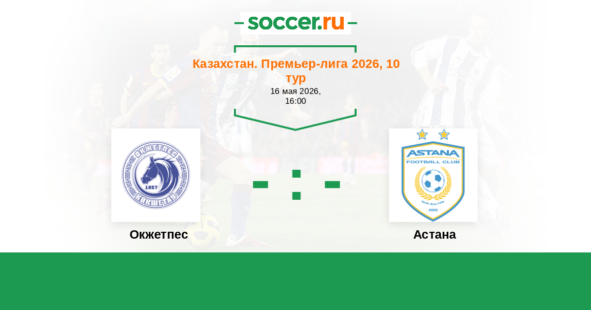 Казахстан. Премьер-лига 28.03.2010 Окжетпес Логотип футбольный клуб Окжетпес (Кокшетау) 2:1 Логотип футбольный клуб Астана Астана