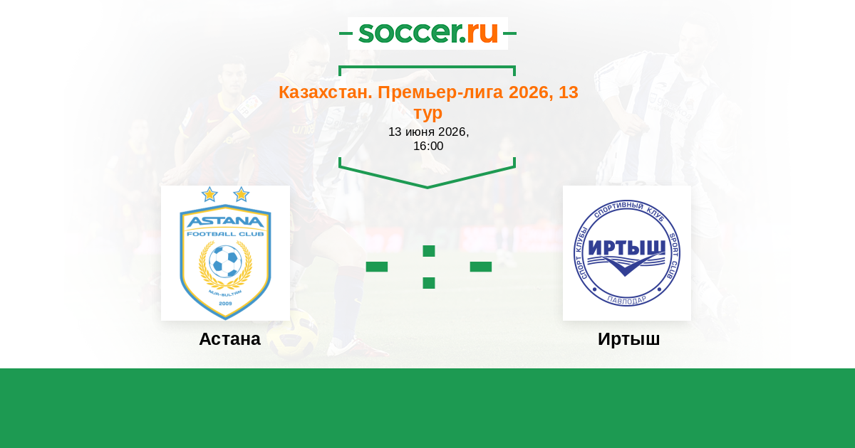 Казахстан. Премьер-лига 19.06.2016 Астана Логотип футбольный клуб Астана 1:1 Логотип футбольный клуб Иртыш (Павлодар) Иртыш