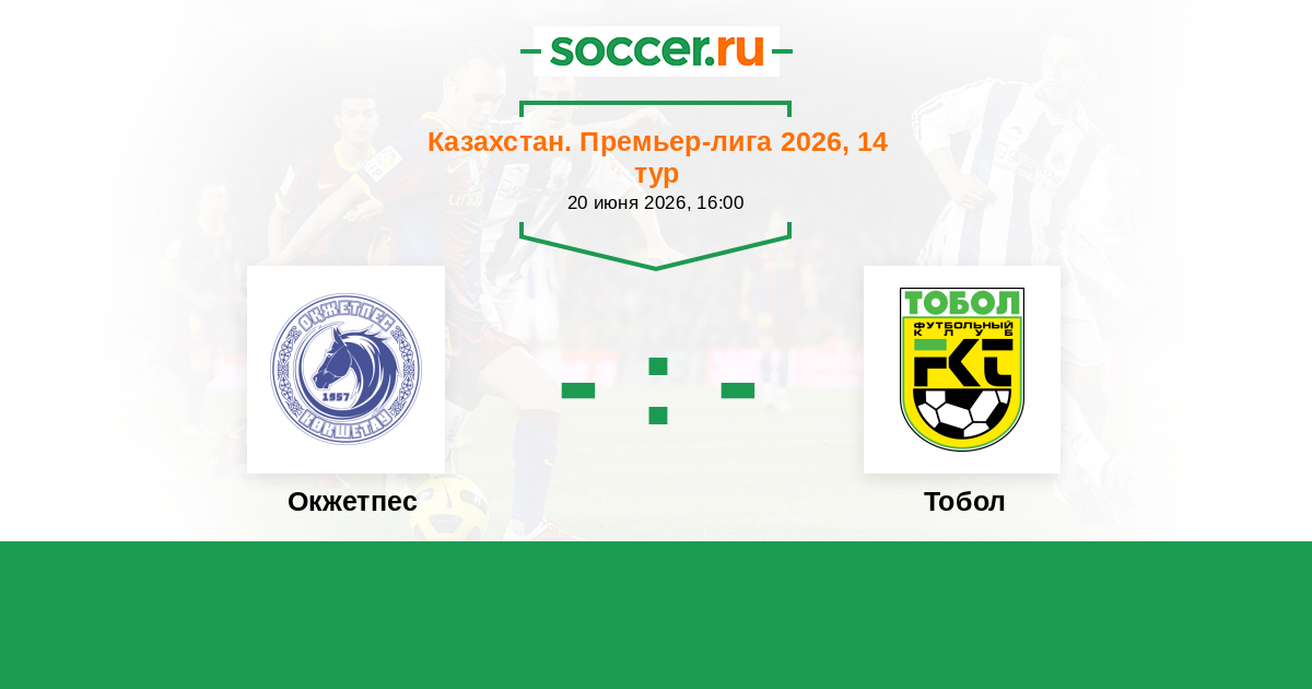 Казахстан. Премьер-лига 23.06.2019 Тобол Логотип футбольный клуб Тобол (Костанай) 2:0 Логотип футбольный клуб Окжетпес (Кокшетау) Окжетпес