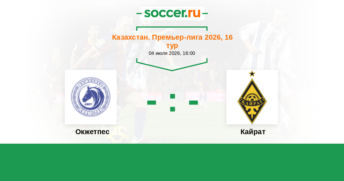 Казахстан. Премьер-лига 24.06.2012 Окжетпес Логотип футбольный клуб Окжетпес (Кокшетау) 0:0 Логотип футбольный клуб Кайрат (Алматы) Кайрат