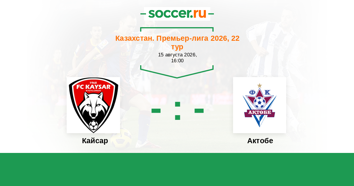 Казахстан. Премьер-лига 18.08.2024 Актобе Логотип футбольный клуб Актобе 1:1 Логотип футбольный клуб Кайсар (Кызылорда) Кайсар