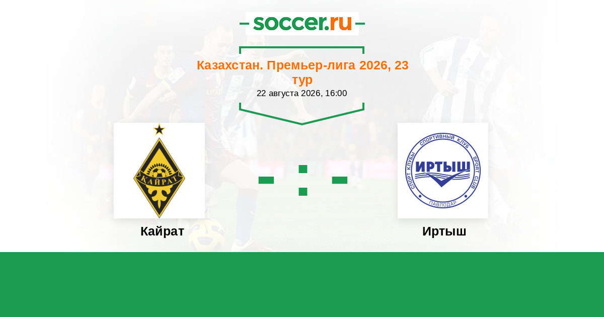 Казахстан. Премьер-лига 16.06.2012 Кайрат Логотип футбольный клуб Кайрат (Алматы) 0:0 Логотип футбольный клуб Иртыш (Павлодар) Иртыш
