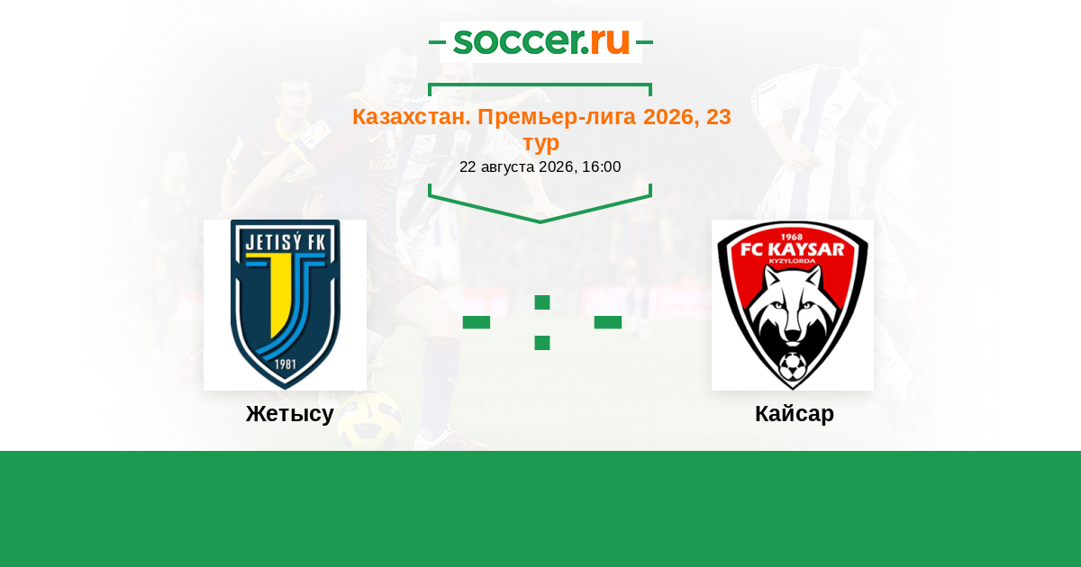 Казахстан. Премьер-лига 26.08.2023 Кайсар Логотип футбольный клуб Кайсар (Кызылорда) 1:1 Логотип футбольный клуб Жетысу (Талдыкорган) Жетысу