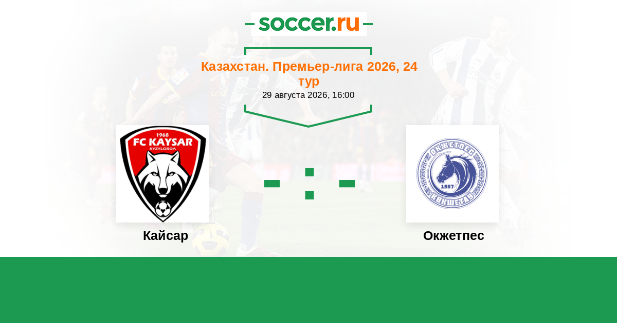 Казахстан. Премьер-лига 26.08.2012 Окжетпес Логотип футбольный клуб Окжетпес (Кокшетау) 2:2 Логотип футбольный клуб Кайсар (Кызылорда) Кайсар