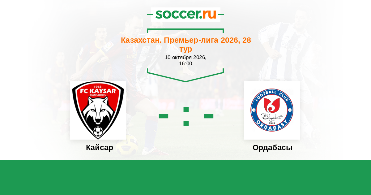 Казахстан. Премьер-лига 26.08.2017 Кайсар Логотип футбольный клуб Кайсар (Кызылорда) 1:1 Логотип футбольный клуб Ордабасы (Шымкент) Ордабасы