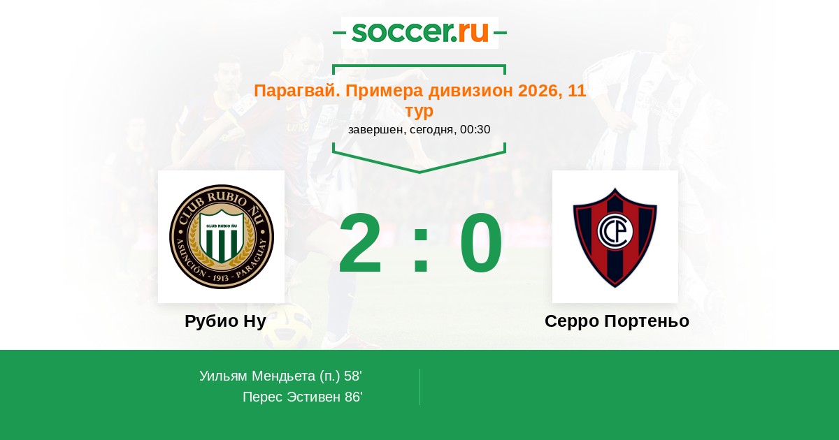 Протокол матча Рубио Ну против Серро Портеньо