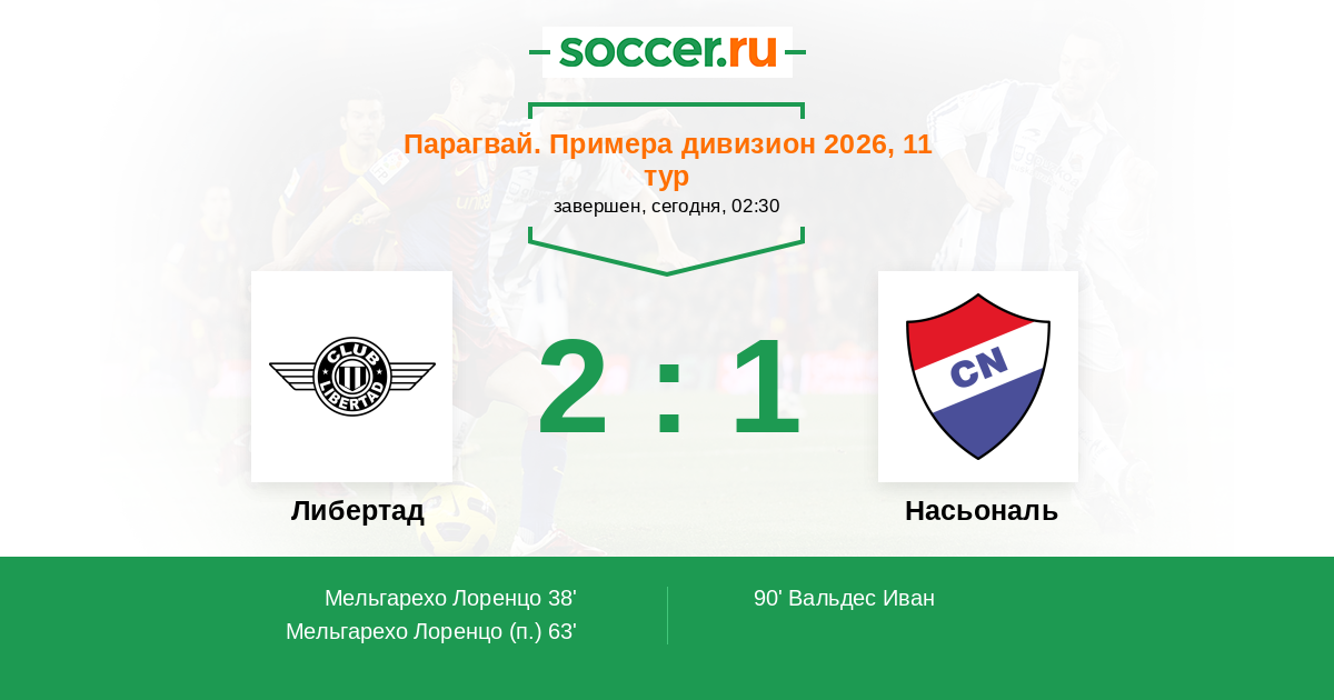 Протокол матча Либертад против Насьональ