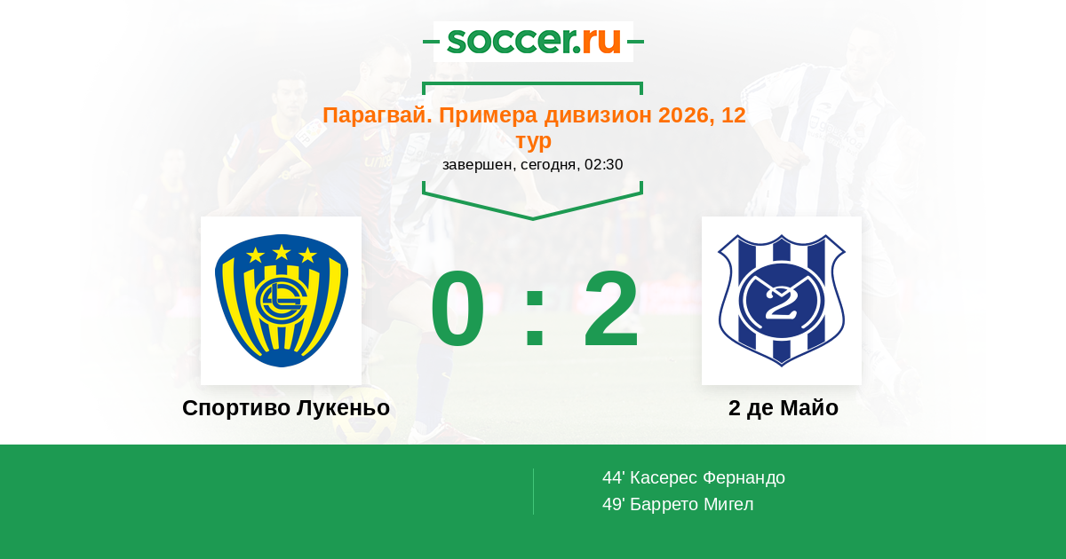 Протокол матча Спортиво Лукеньо против 2 де Майо