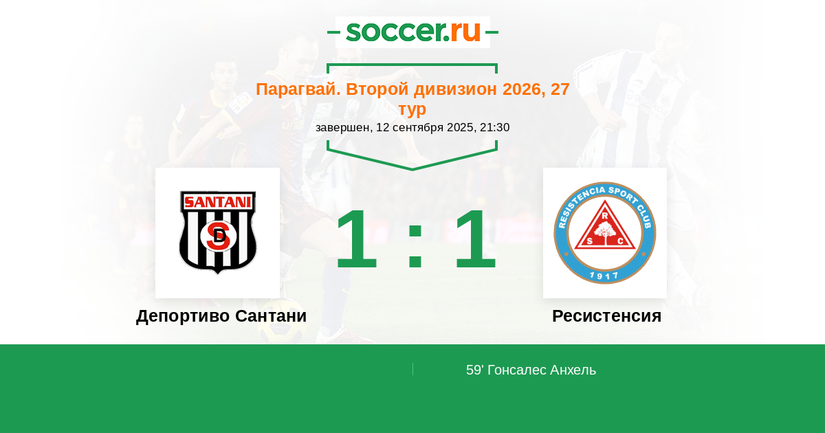 Протокол матча Депортиво Сантани против Ресистенсия