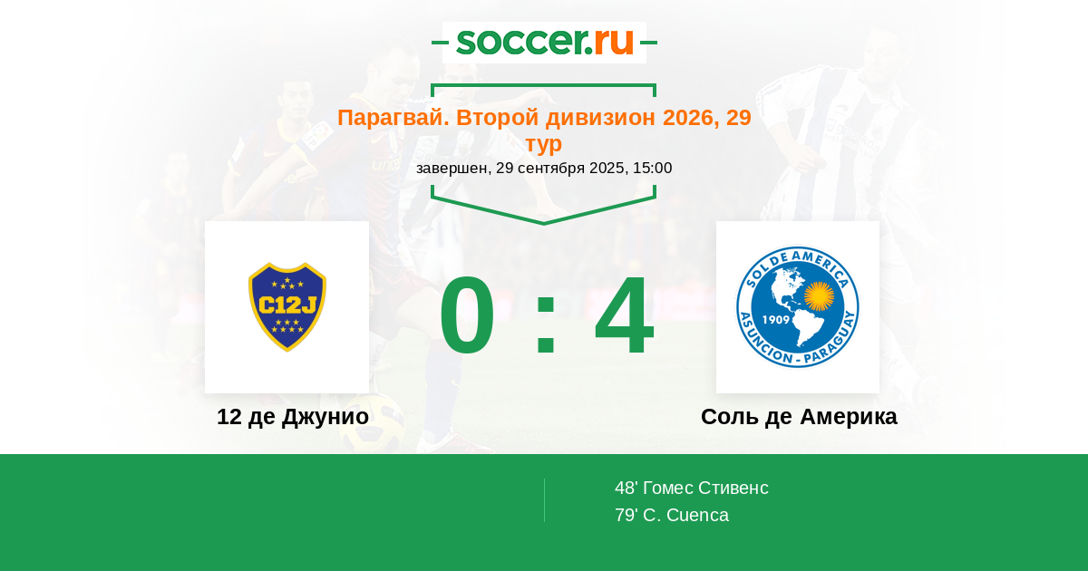 Протокол матча 12 де Джунио против Соль де Америка