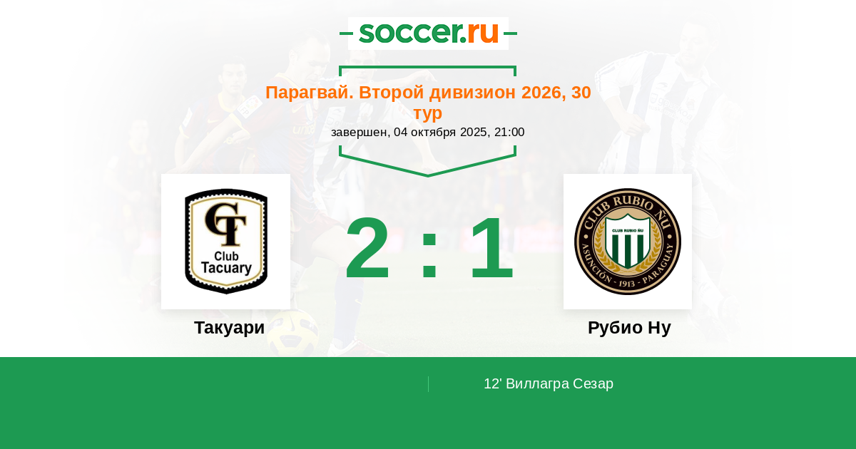 Протокол матча Такуари против Рубио Ну