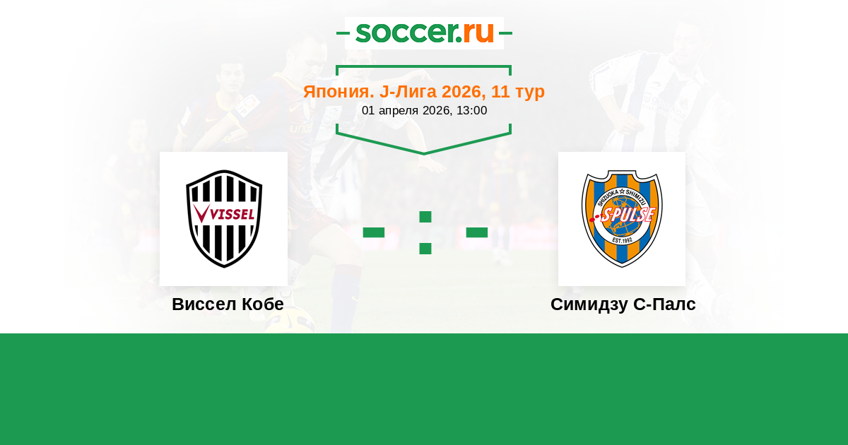 Япония. J-Лига 1 11.04.2021 Виссел Кобе Логотип футбольный клуб Виссел Кобе 1:1 Логотип футбольный клуб Симидзу С-Палс Симидзу С-Палс