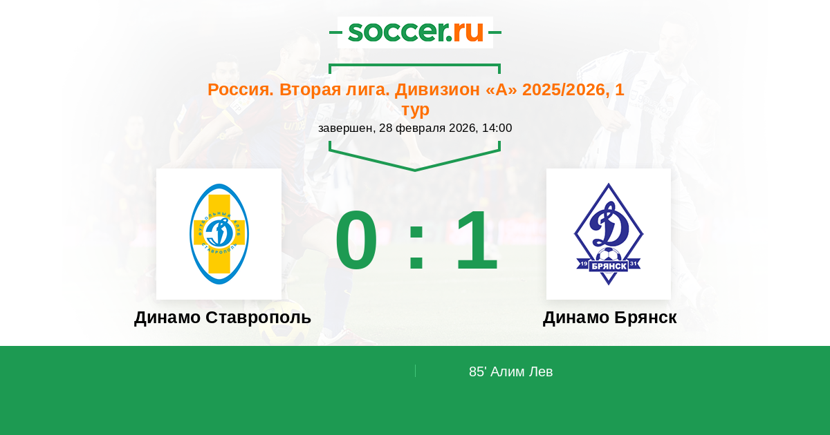 Протокол матча Динамо Ставрополь против Динамо Брянск