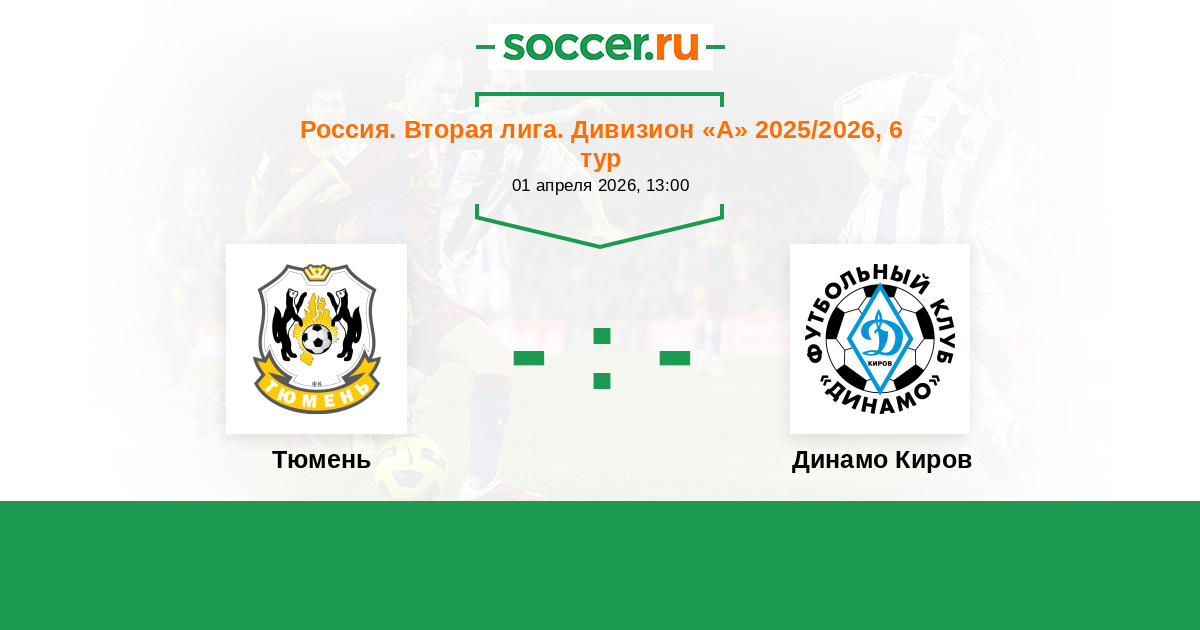 Россия. Вторая лига. Дивизион «А» 05.10.2025 Динамо Киров Логотип футбольный клуб Динамо Киров 1:0 Логотип футбольный клуб Тюмень Тюмень